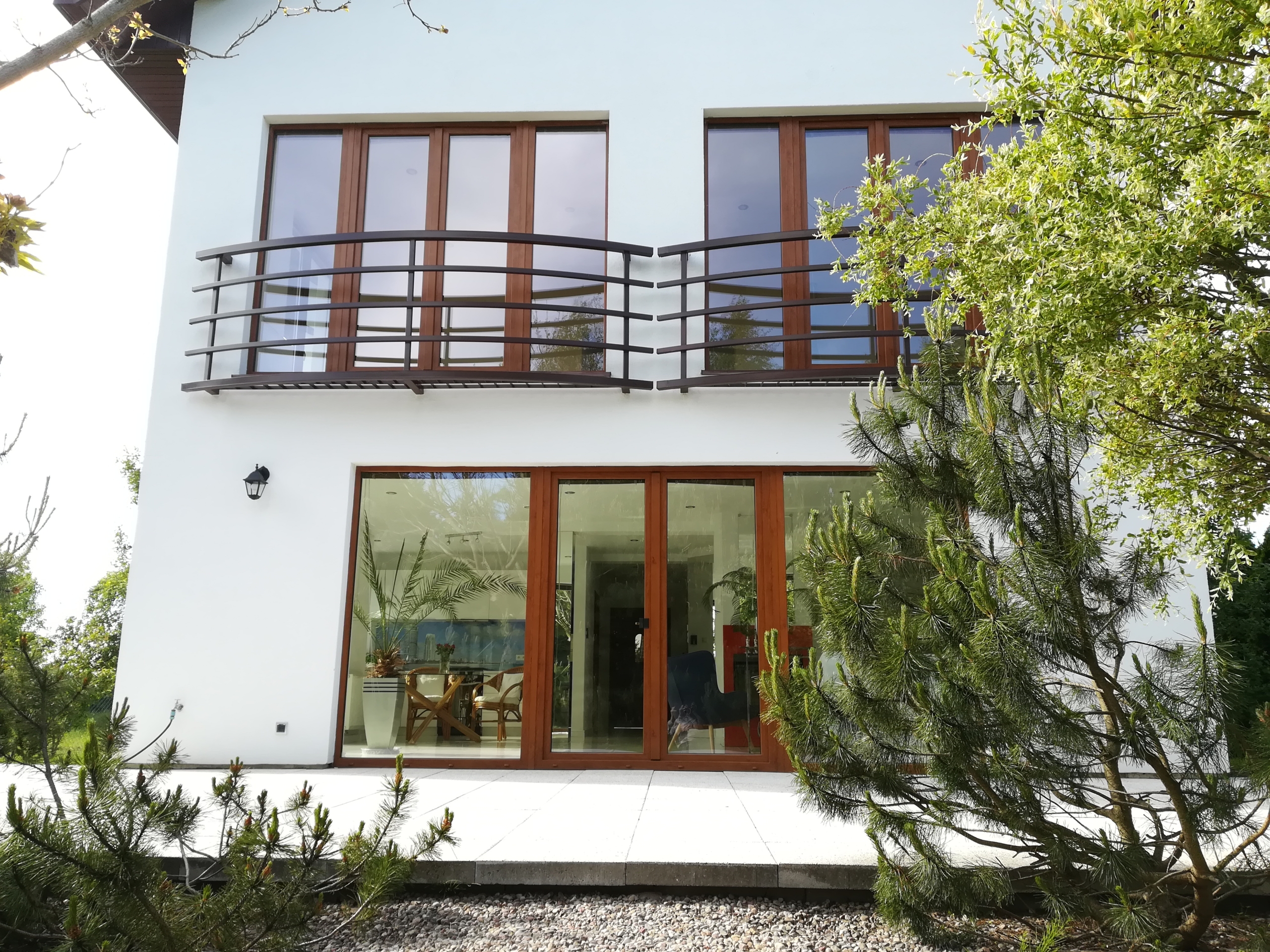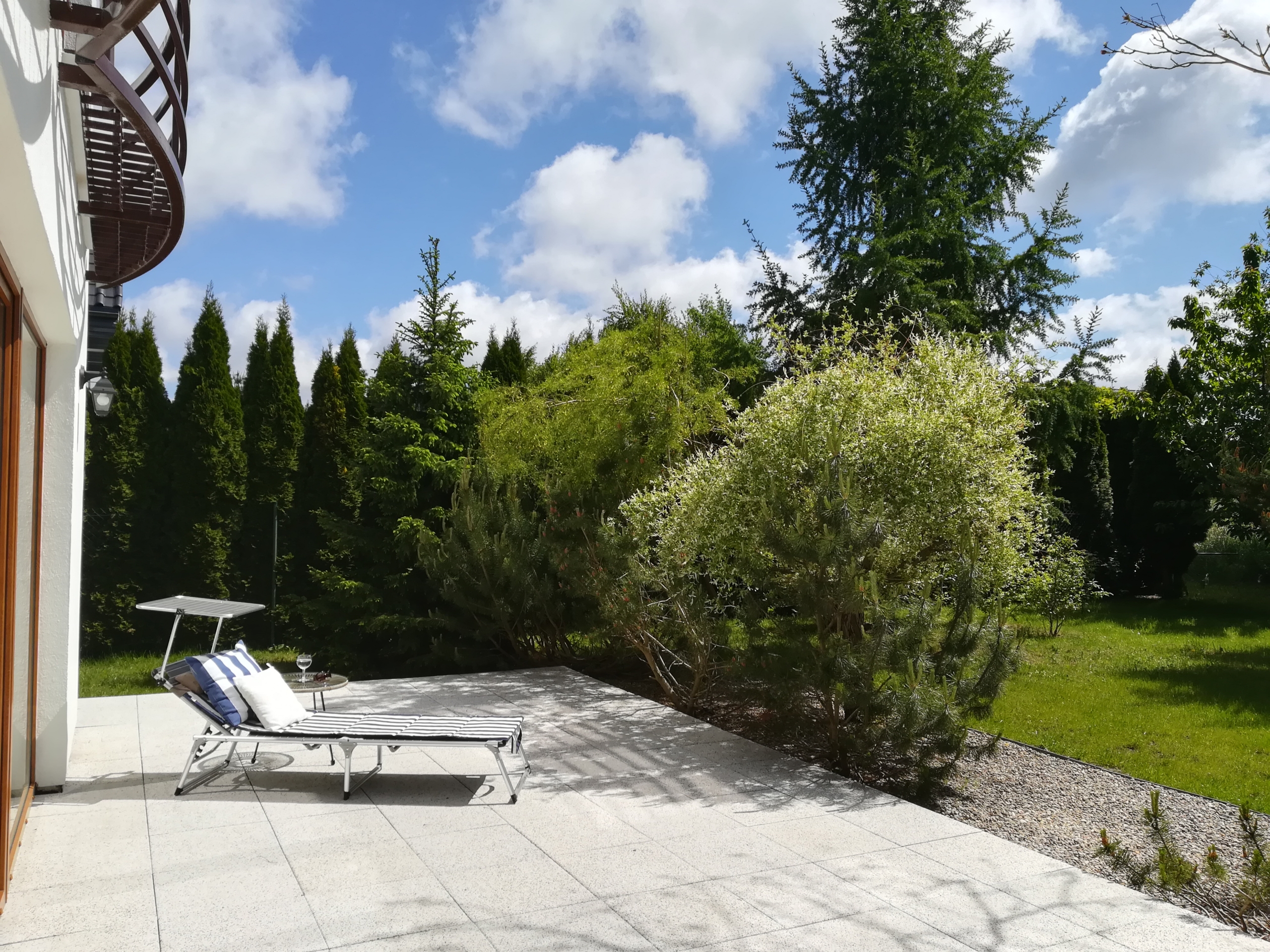 Na działce znajdują się liczne, starannie dobrane nasadzenia: karagana, świerki serbskie, sosny (wydmowa, himalajska, czarna, chińska), kosodrzew, brzozy oraz katalpa. W ogrodzie wydzielono również miejsce na ognisko.