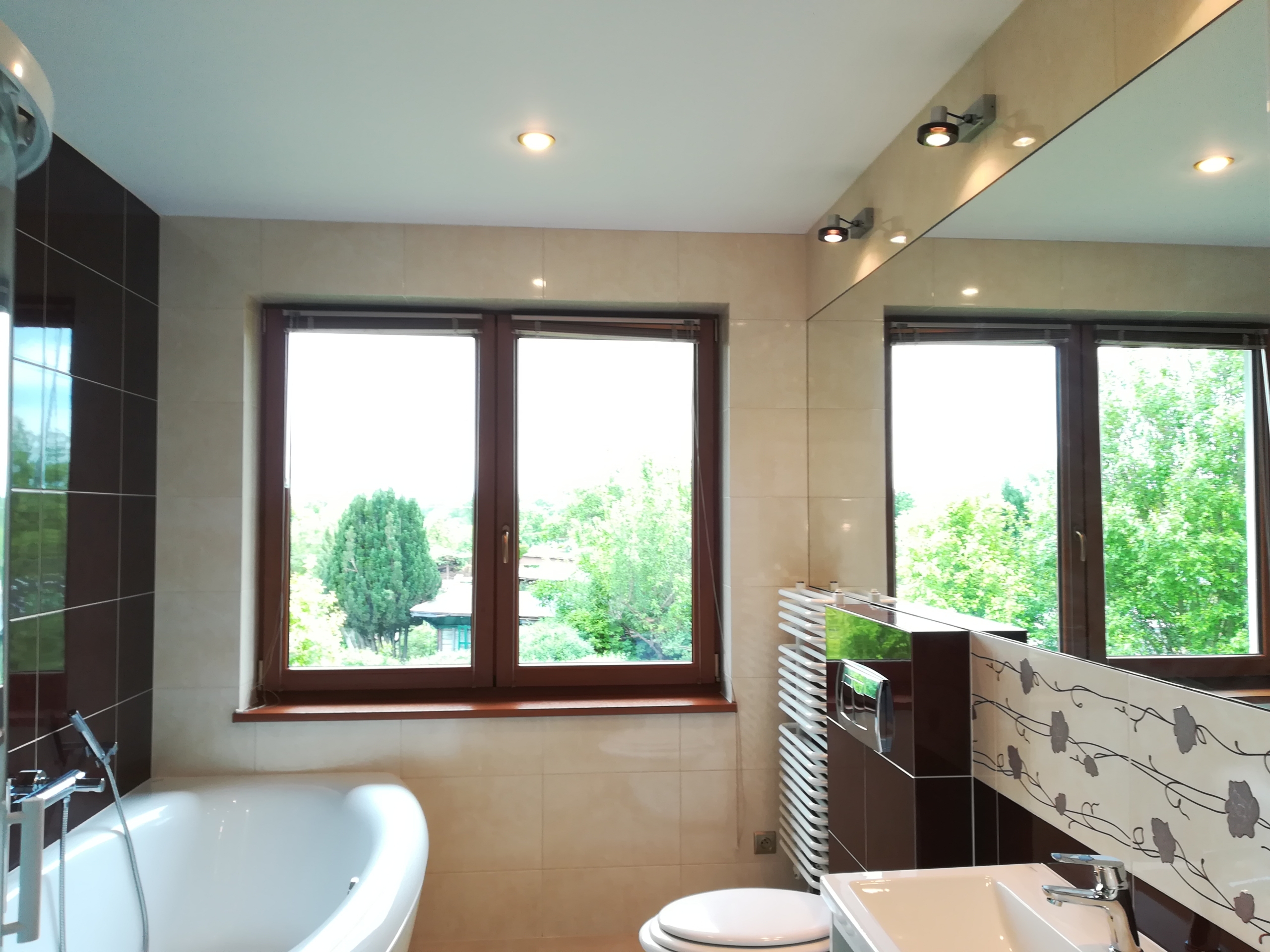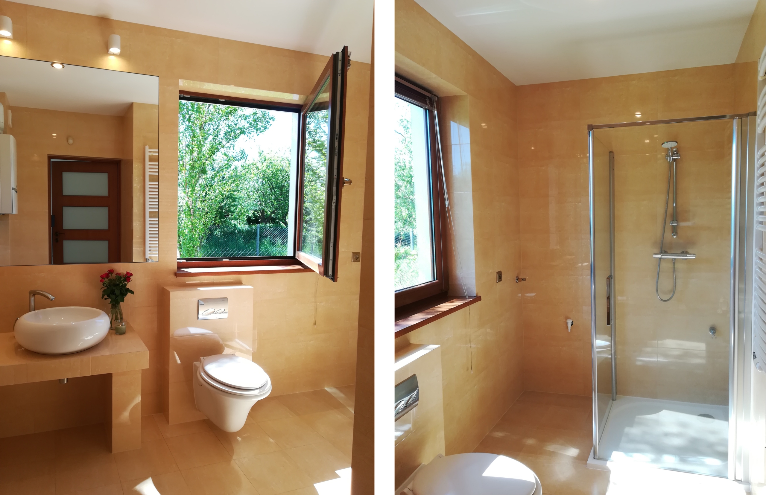 W salonie znajduje się kominek z rozprowadzeniem ciepłego powietrza na cały dom. Dodatkowo dom ogrzewany jest piecem gazowym. Ciepła woda użytkowa podgrzewana piecem gazowym.
