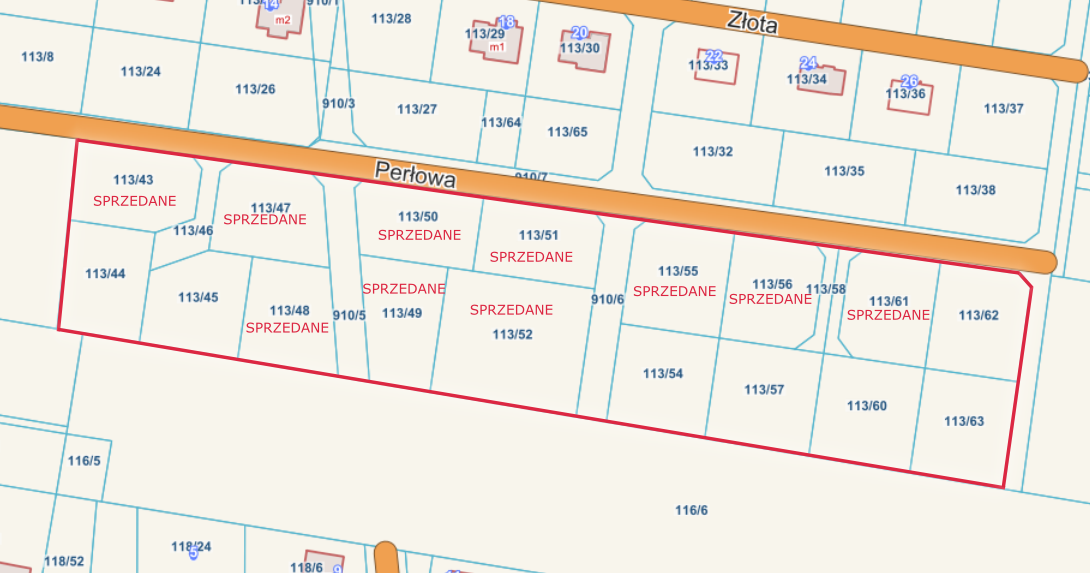 W kompleksie na sprzedaż znajdują się działki: