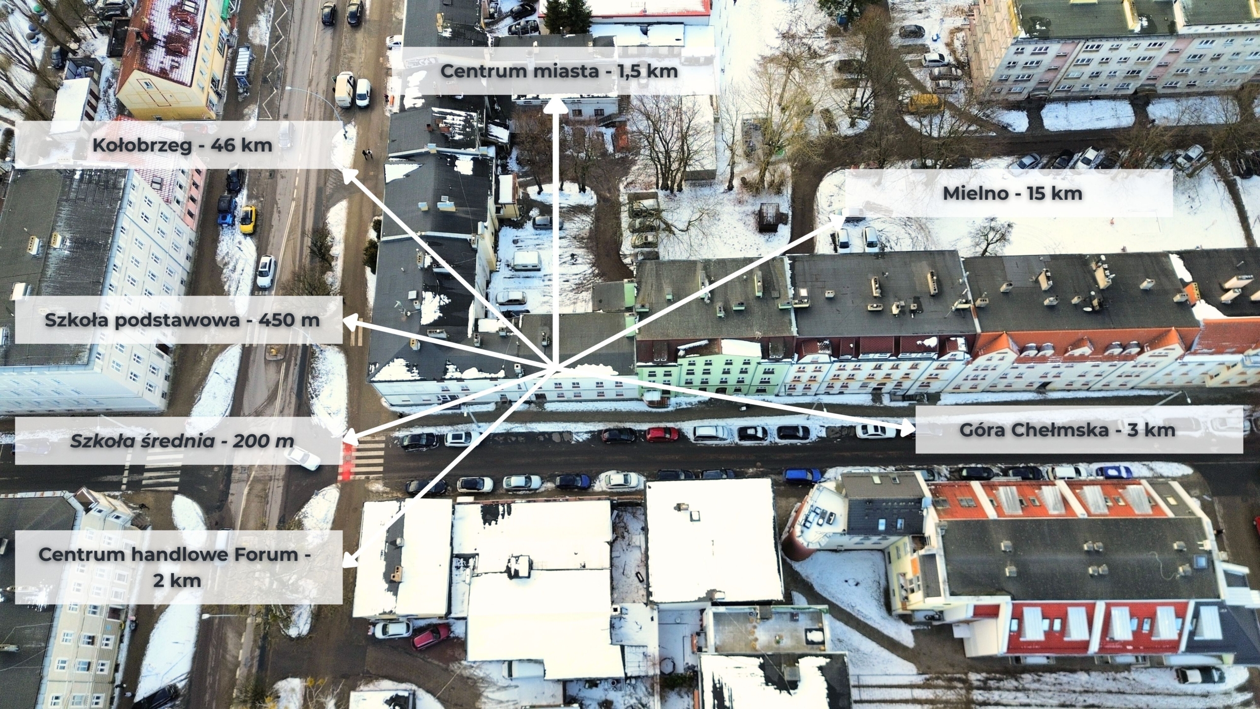 W najbliższej odległości znajdują się przystanki komunikacji miejskiej. Dodatkowo w bliskiej odległości znajduje się piekarnia, supermarkety takie jak Biedronka czy Lidl, przedszkole, szkoła średnia i podstawowa. W pobliżu także wiele punktów usługowych.